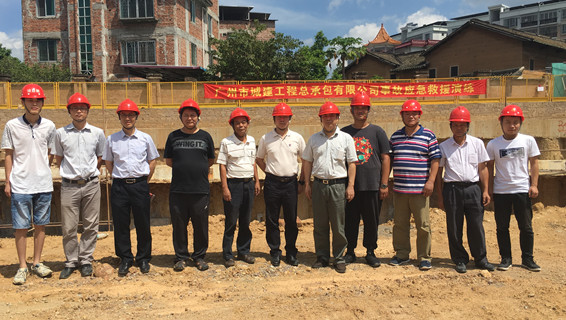 2017年8月14日,總包公司赴梅州嘉應(yīng)學(xué)院醫(yī)學(xué)院附屬醫(yī)院住院大樓項(xiàng)目現(xiàn)場進(jìn)行了應(yīng)急救援演練,參演人員有公司領(lǐng)導(dǎo)曾國勝副總經(jīng)理、李偉君副總經(jīng)理、總工室成員及項(xiàng)目現(xiàn)場人員。